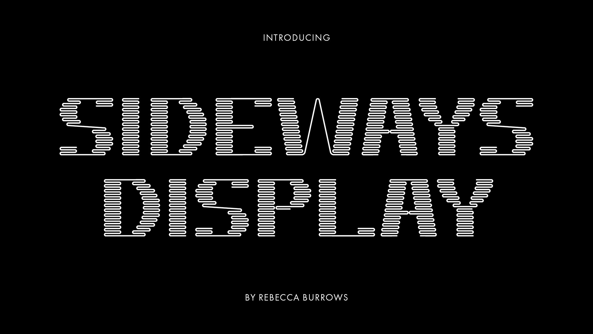 Sideways Display is my first typeface, developed from my 'A Letter Each Day' challenge. The rhythmic horizontal lines are decorative and a bit of an optical illusion.